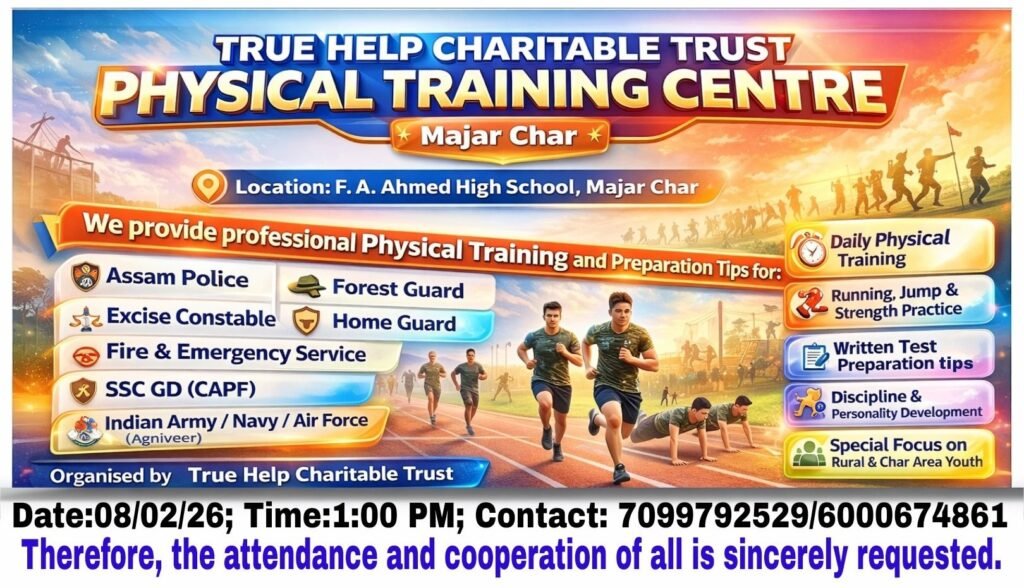 At True Help Charitable Trust, we are committed to empowering young aspirants with the physical strength, discipline, and knowledge required to serve the nation with pride. Our Physical Training Centre is specially designed for students preparing for Defence Forces, Police, Paramilitary, and Uniformed Services examinations.